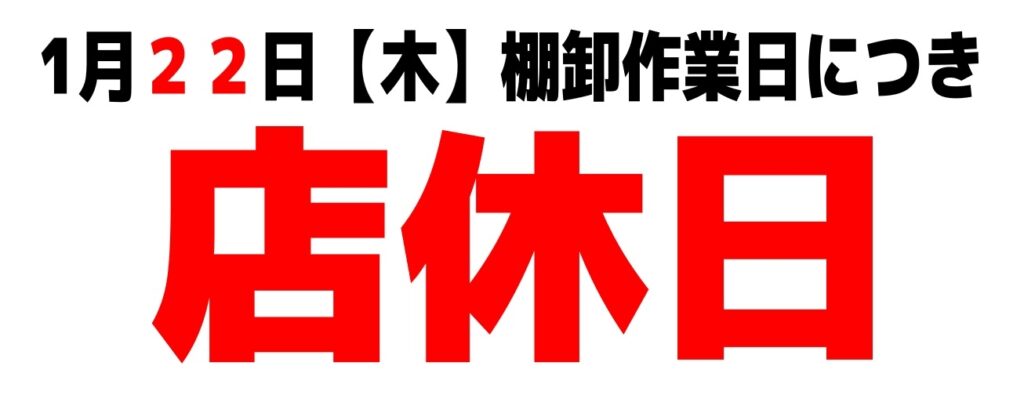 棚卸しの為店休日のお知らせ!