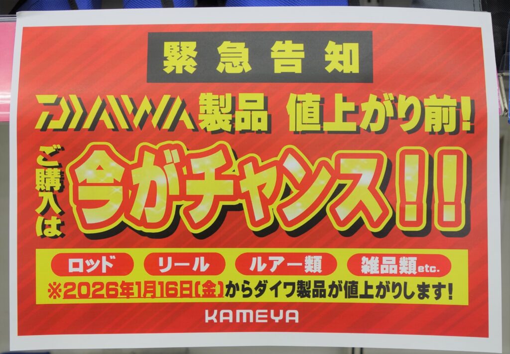 ダイワ様製品がいよいよ値上がりとなります。