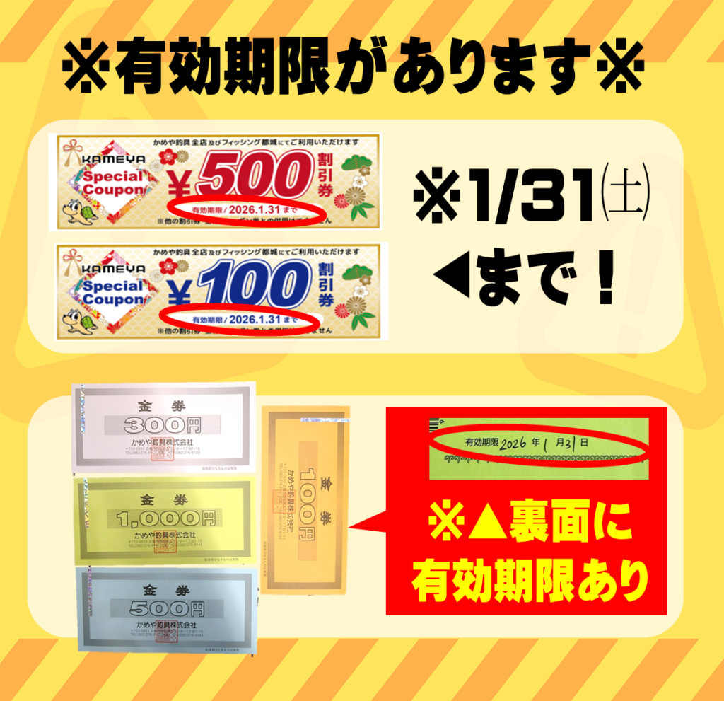 今月開催があった抽選会や宝くじでお渡ししているクーポン券や金券には有効期限があります!!