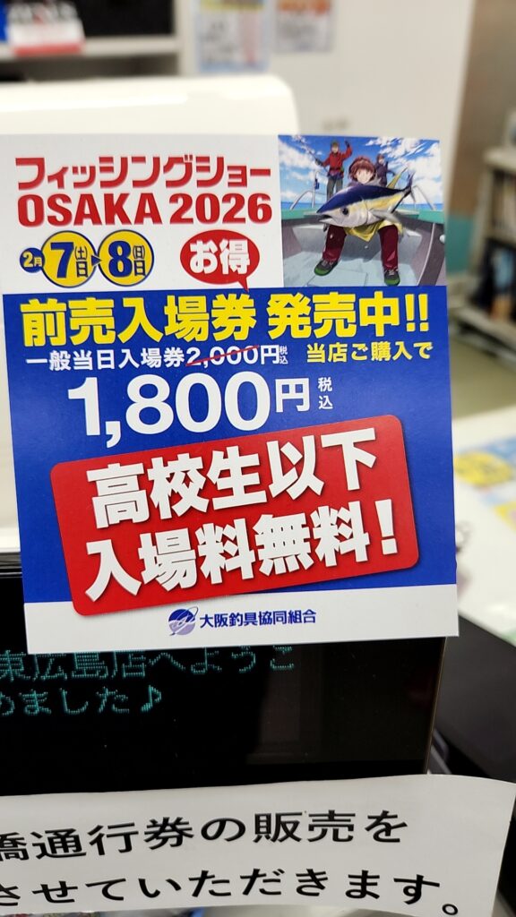 フィッシングショー大阪の前売入場チケットを当店でも絶賛販売中です😁