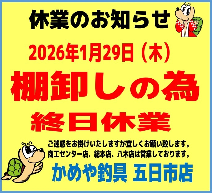 明日 1月29日(木)は棚卸の為、終日休業です。近隣の、商工センター店は開いてます。そちらをご利用くださいね。