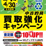 2月1日~4月30日の期間中、中古釣具買取強化キャンペーンを開催致します!