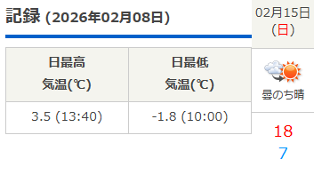 2/15の予想最高気温が18度でした。