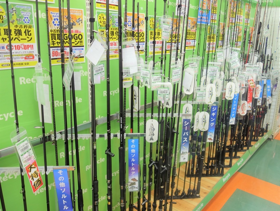 中古商品の品揃え豊富です(*´▽`*)高級リールやルアー、エギ等も盛りだくさんです(^^)/中古商品は一点物ですのでご購入は早いもの勝ちです(*´▽`*)掘り出し物があるかも(*‘∀‘)ルンルン