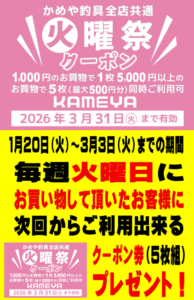 本日は火曜祭(*‘∀‘)お得なクーポン配布中(^^)/