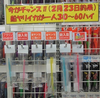 皆様、こんにちは。2月も後半に入り、山陰方面で波止・船共にヤリイカが絶好調です。多い時に100ハイ超えも珍しくないとの事です!本日は、船ヤリイカでかなり効果的なプラヅノの入荷のご案内です。カラーはケイムラ・ライトブルー・ピンクケイムラの3種類。サイズは11㎝と14㎝のシングル・ダブルが入荷しております。