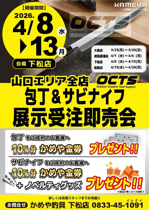 4月8日~4月13日までの6日間、包丁&サビナイフの展示受注会を開催致します!!