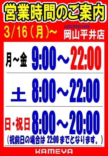 3月16日~営業時間が変わります