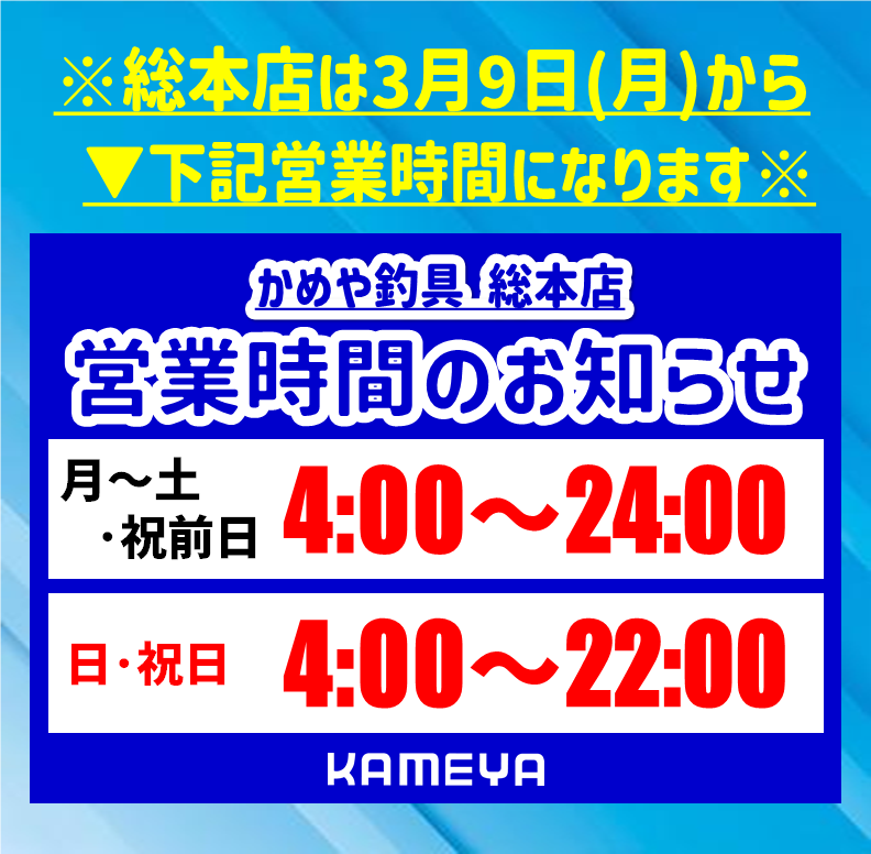 来週3/9㈪~総本店の営業時間が変更となります。