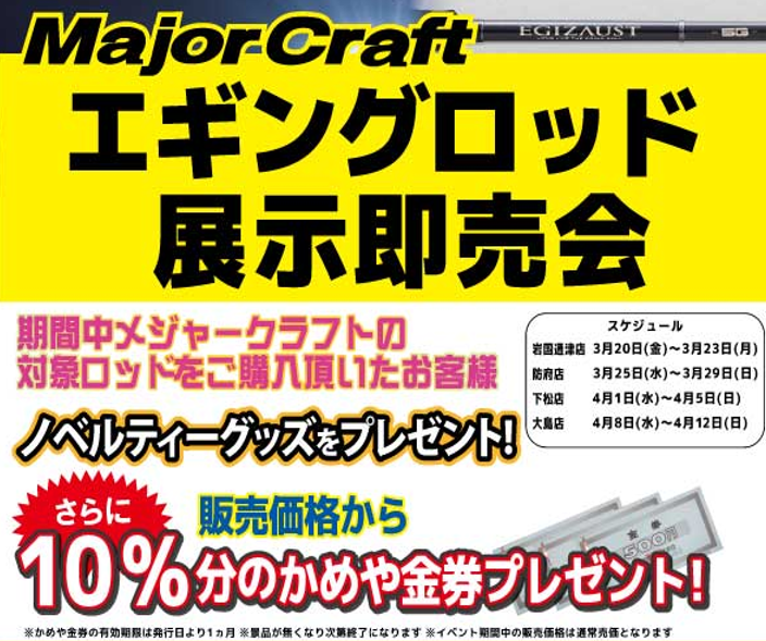 メジャークラフトエギングロッド展示会開催中!!