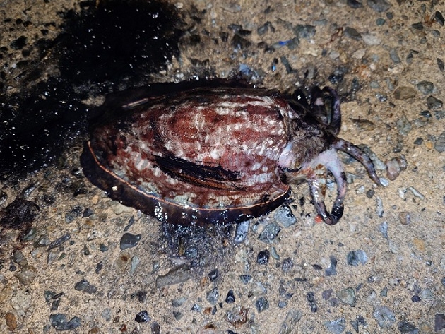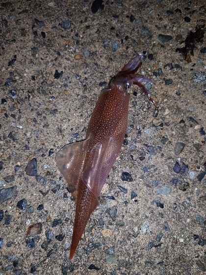 と波止の先端に向かおうとしたら、付け根付近で釣りしていた方がオスと思われる良型ヤリイカ釣ってる!!?