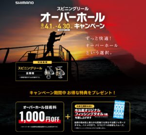 シマノ スピニングリールオーバーホールキャンペーン!!