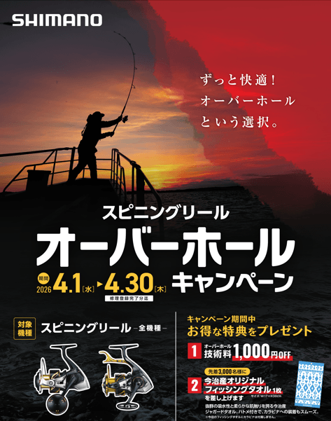 シマノ製スピニングリール オーバーホールキャンペーン開催中