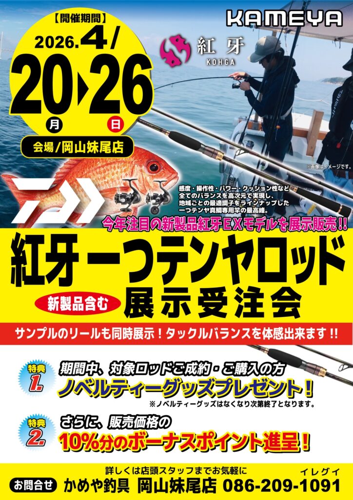 本日より紅牙一つテンヤロッドイベント開催!!