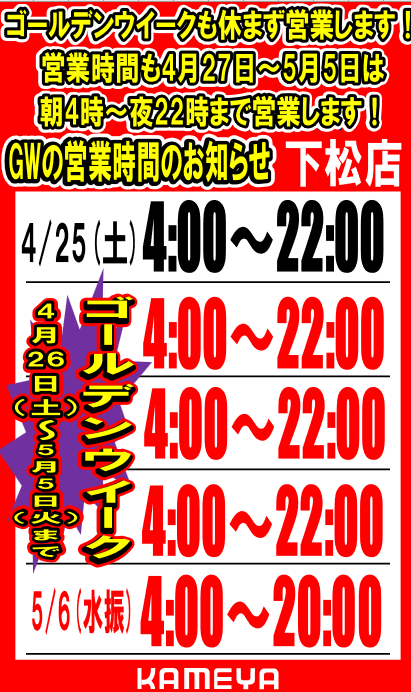 皆様、おはようございます。今日は、ゴールデンウイーク営業時間のご案内になります!