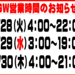 GW営業時間のお知らせ
