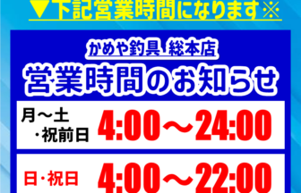 【営業時間変更のお知らせ】かめや釣具総本店ですが営業時間変更のご案内です。本日2/8㈰は雪の影響の為、18時閉店とさせて頂…