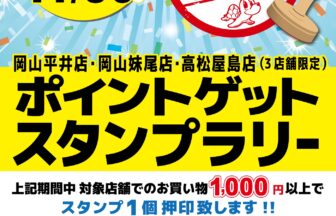 ただいま、ポイントゲットスタンプラリーを開催中♪1,000円以上お買い上げで1日1店舗1回のスタンプで押してお…