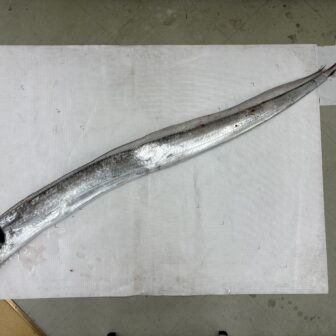 豊後水道方面でのテンヤ釣りで176.7cm、3.42kgで指7本サイズのタチウオのデジタル魚拓のお持ち込みを頂きました。おめでとうございます!!
