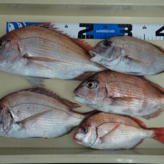 タイラバにて釣果持込みがありがとうございます♪笠戸(火振)にてマダイ5匹!!型は全体的に小さかったとの事でした(´;ω;`)塩焼きと刺身で頂くそうです♪