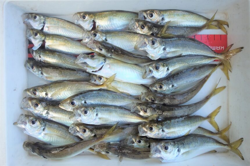 当店近くの漁港で豆アジ釣れています!