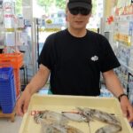 一つテンヤでの釣果です、10号のテンヤニ冷凍海エビを付けての釣果 クロー系のワームを使用しても良いそうです