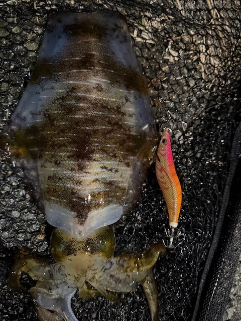 宇野周辺にてアオリイカの500前後が3杯釣れたそうです。