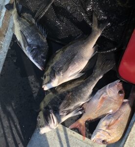 チヌは小型も多いが、45㎝クラスがコンスタントに釣れています。(30㎝クラスはリリース)