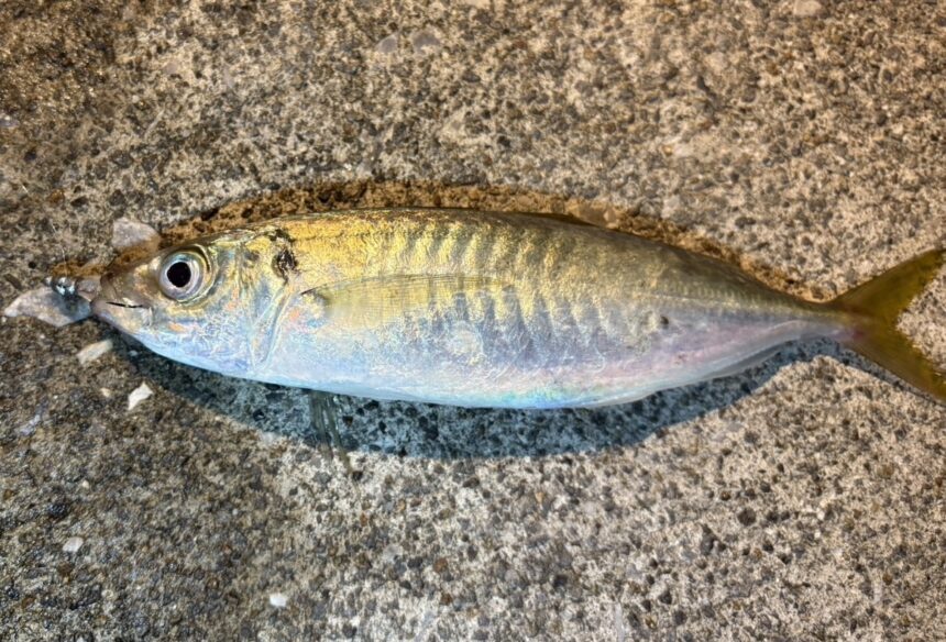 夜間の外灯周りにてアジ20㎝までが8匹釣れました。