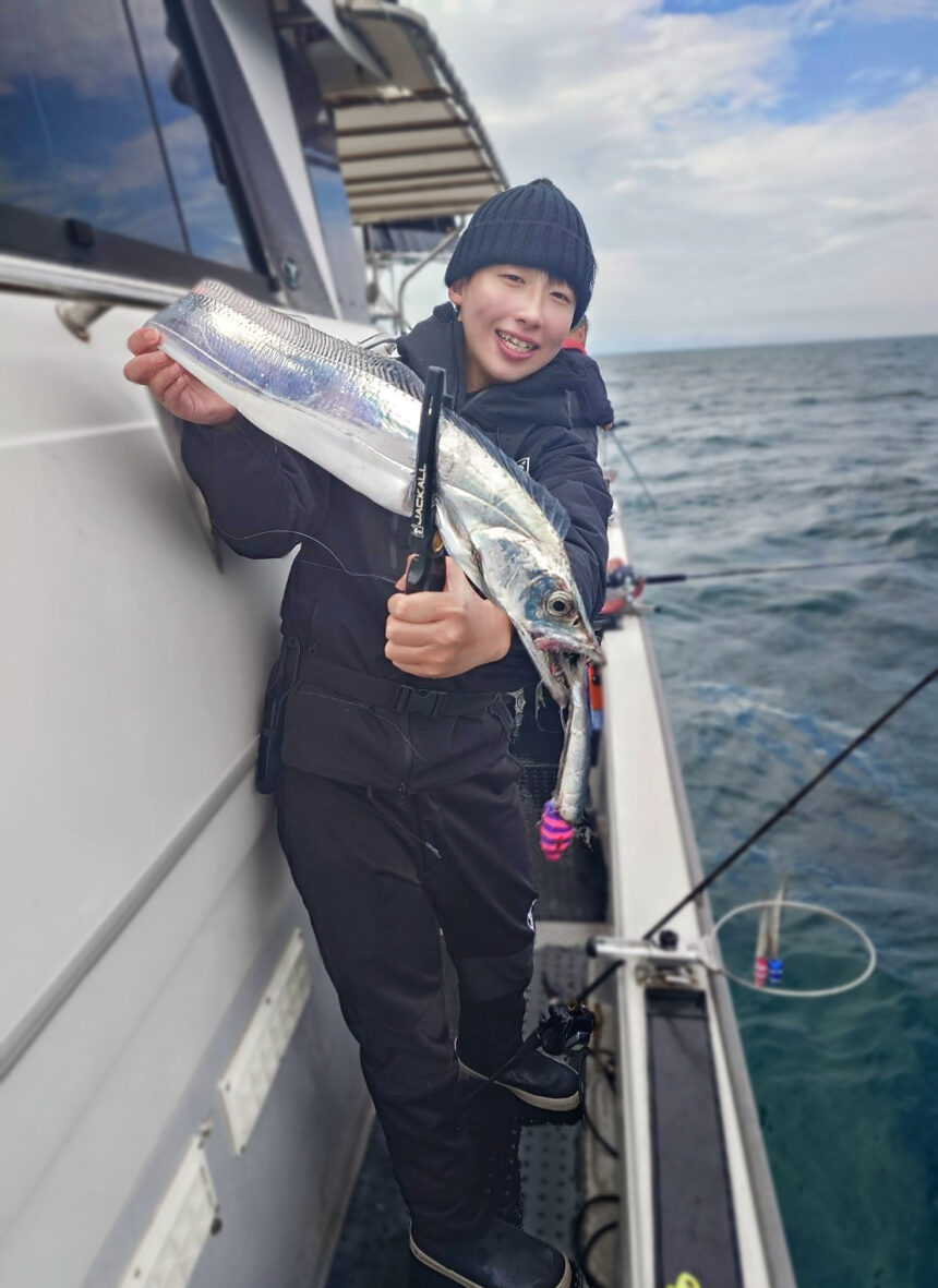 【スタッフ釣果】太刀魚テンヤ、餌はイワシ、太刀魚F3-4本、20匹釣れています。