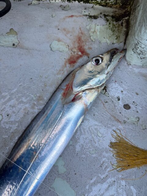 周防大島にて指5本までのタチウオが43匹釣れたそうです。