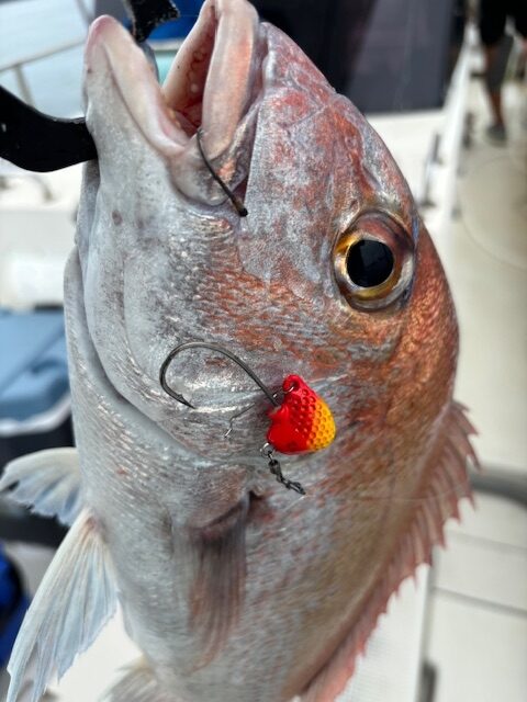 下津井沖にて一つテンヤ真鯛で真鯛の52㎝を筆頭に5枚前後釣れたそうです。