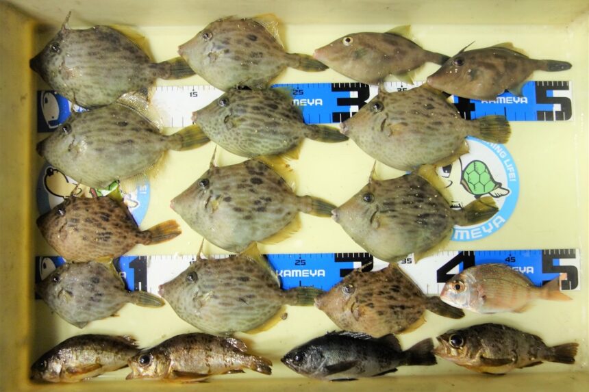 胴突き仕掛けでカワハギが釣れています!エサは青虫がおすすめです!