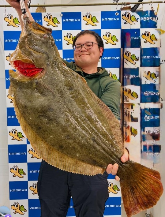 広島湾内にて泳がせ釣り🐸ヒラメ92cm8,410g 年末年始の風物詩です。巨大ヒラメ、おめでとうございます♬