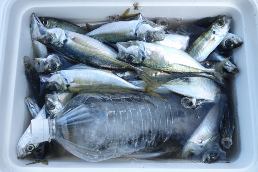 15㎝から20㎝のアジがサビキ釣りで釣れています!