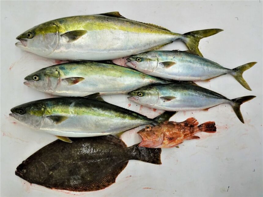 平郡島周辺での泳がせ釣りで、ヤズと鮃