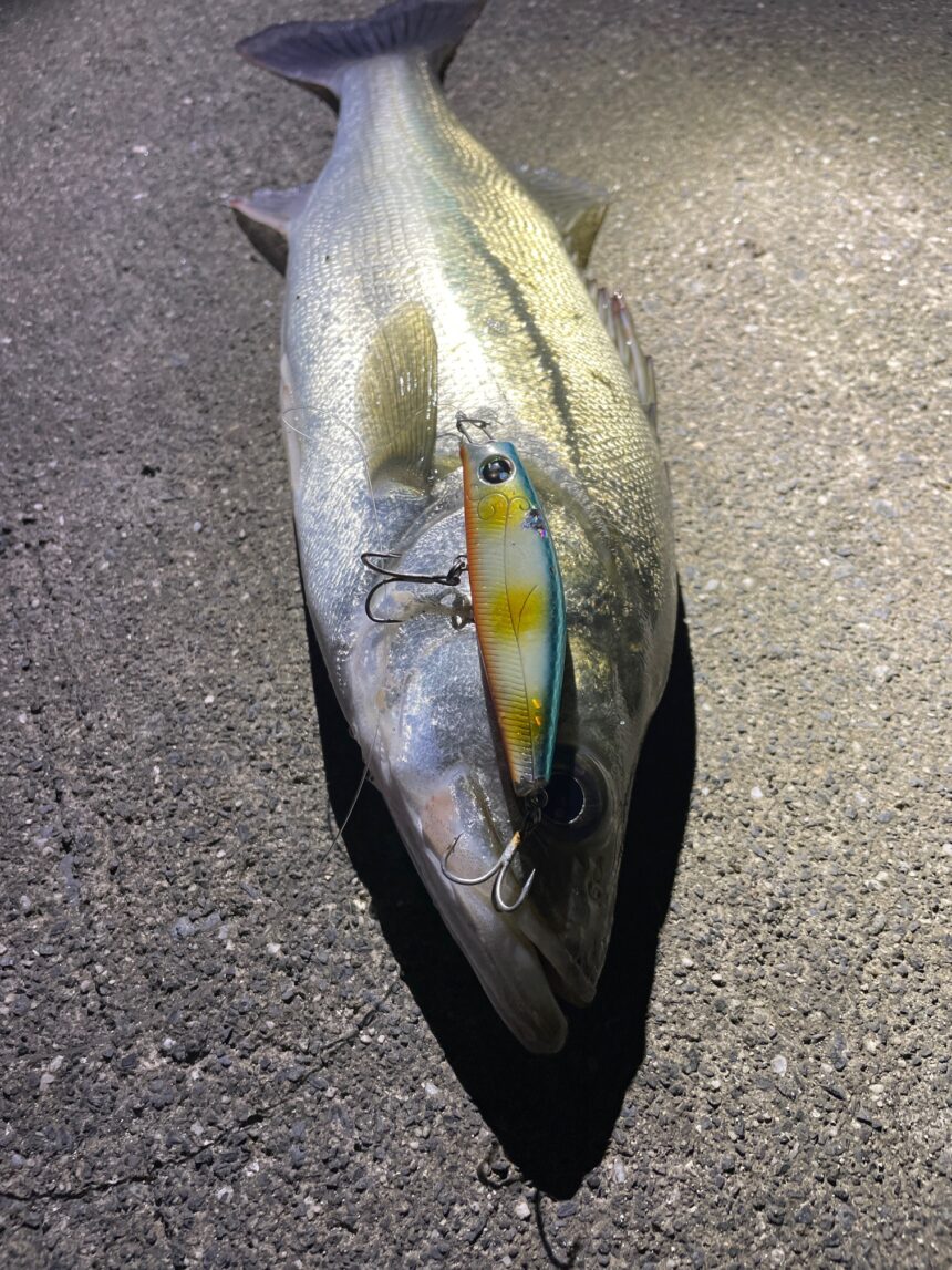 高梁川周辺にてシーバスの45㎝から50㎝程が2匹釣れたそうです。