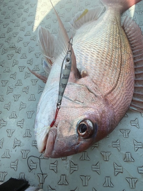 下津井沖にて真鯛の45㎝クラスと筆頭に船中8枚程釣れたそうです。