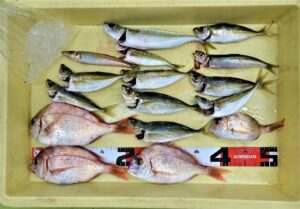 アジとチダイ、サバ、イワシ 胴突き仕掛けでキス