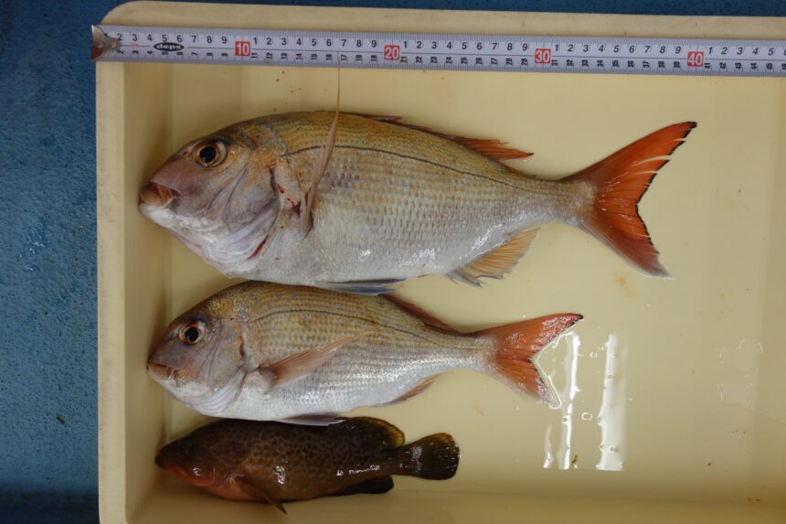 因島沖で鯛ラバ60g(タングステン製)を使用して釣られております。