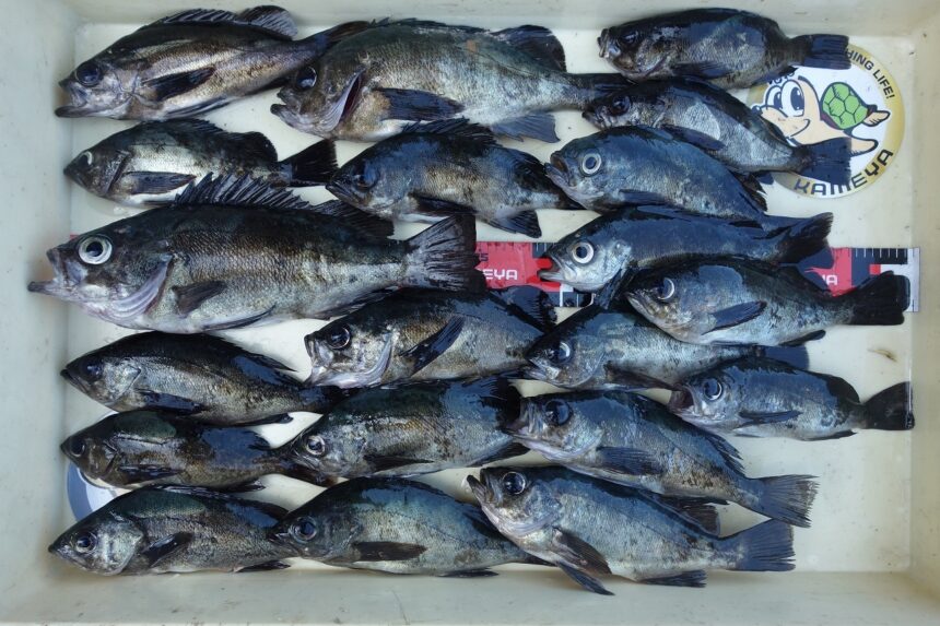 エビ撒き釣りでメバルが良く釣れています!大きい魚体で26㎝です!