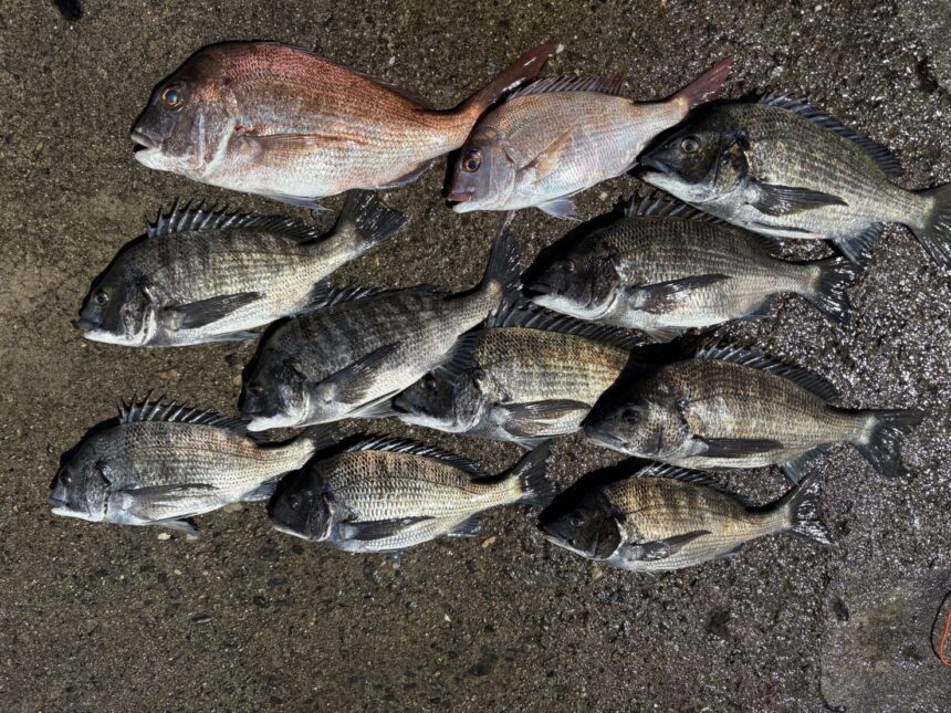 チヌ42㎝までが9匹、真鯛45㎝までが2匹の釣果でした(^^)/