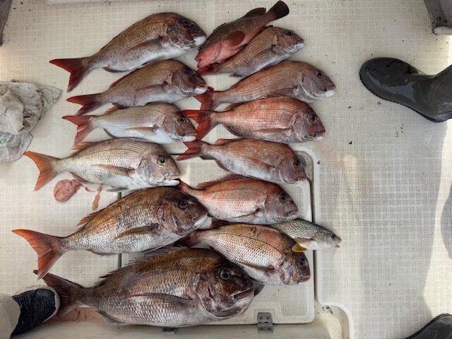 下津井沖でタイラバにて真鯛の64㎝を筆頭に