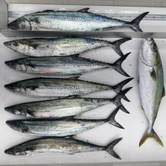 皆様、こんにちは(≧▽≦)かめや釣具下松店です🐢お客様より釣果のお持ち込みを頂きました!(^^)!合計サワラ7匹、ハマチ2匹釣れたそうです(#^^#)光沖で船での釣果…