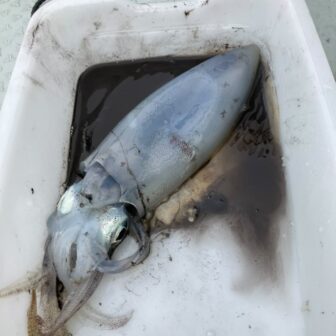 下津井沖にてアオリイカの600~800がティップランエギングで3杯釣れたそうです。40~60mの深場で60gの3.5号のエギを使用されたとの事です。