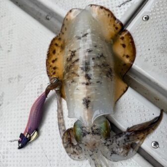 宇野沖にてティップランエギングでアオリイカの600~800gが4杯釣れたそうです。ピンクやパープル系のエギで50~70gで使用していたとの事です。