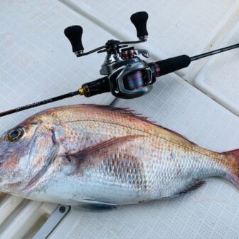 下津井沖でタイラバにて真鯛の40㎝前後を筆頭に3匹釣れたそうです。アタリも少なく、厳しい状況でしたがケイムラ系のネクタイで何とか釣れたとの事です。