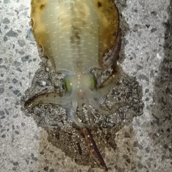 おかっぱりエギングにて720g胴長25㎝までのアオリイカが5ハイ。エギは3.5号ノーマル。各釣場から良型釣れ始めています。