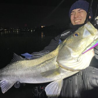 当店にしまるスタッフの釣果!!広島市内河川にて良型シーバスがHIT!!!日によってベイトにムラがあるそうですがベイト活性の日はシーバスも好調とのことで…