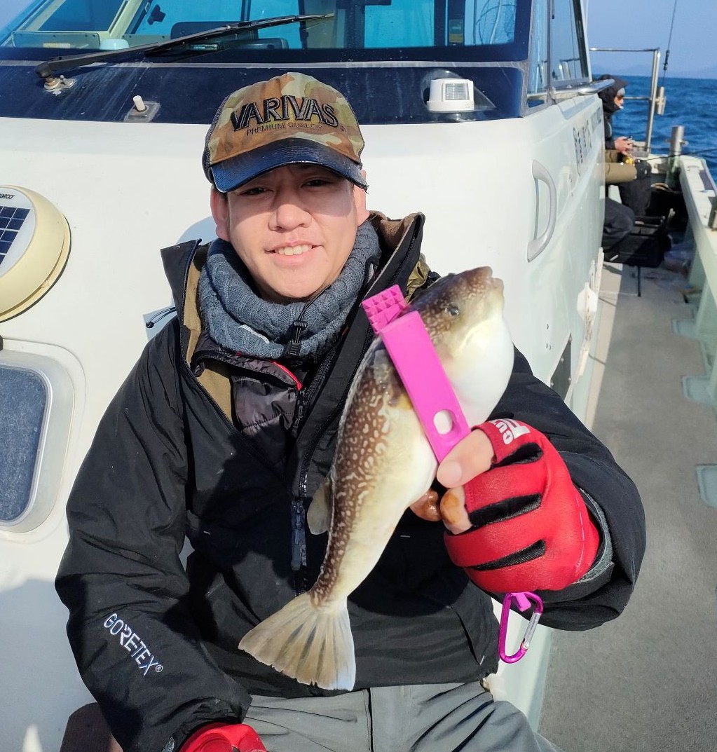 喰わせフグ釣り初挑戦♪南金田店、高知県 こんにちは、フグ担当みうらです!! 先日、店長と坂下さんと喰わせフグ釣りに挑戦して参りました。 乗船したのは香川県三豊市の須田港にある『七侑丸』様 カワハギ釣りと同じだろう位に考えておりましたが、 アタリの小ささと食い気の渋さに大苦戦。。。 餌は有頭の小海老を使用しました。 苦戦しながらもわさわさした違和感に合わせてみると待望の1匹が!! コモンフグとナシフグという種のフグが釣れます。香川県で釣れるナシフグは『讃岐でんぶく』というブランドらしいです♪お昼には船長がフグ雑炊を作ってくれます。 冷え切った体に染み渡る激ウマ雑炊でした。これ食べるのを目的に行く価値あります!! 前日は激渋だったそうですが、終わってみれば11匹と良い方みたいです♪船長が身だけにしてくれますので帰ってからもめっちゃ楽です!! 贅沢食いしちゃいますよね♪唐揚げも最高、ビール止まりませんよ!! 炙って分厚く切ったたたきも美味いです。鍋にしても良い、〆には雑炊!! たまりませんよ、旬を食らいましょう♪ 船長も大変優しく餌の付け方や釣り方等分かりやすくレクチャーしてくれますのでビギナーでも安心です!! 当日の状況は3人に聞いてみてください♪ BIGトラフグも稀に釣れますので次回は虎狩りに行ってきます!! 南金田店 TEL.088-883-1091 店舗案内 イベント 大会 SALE